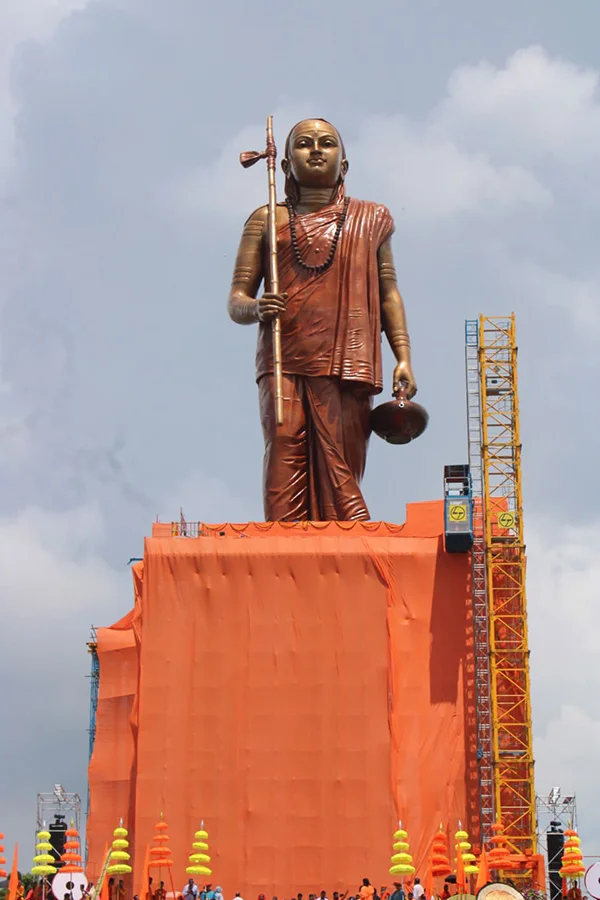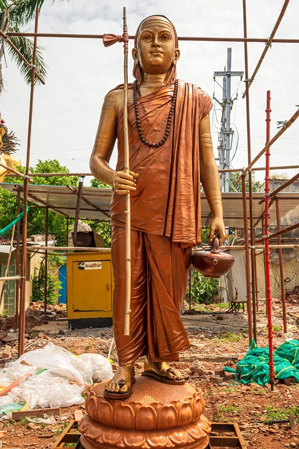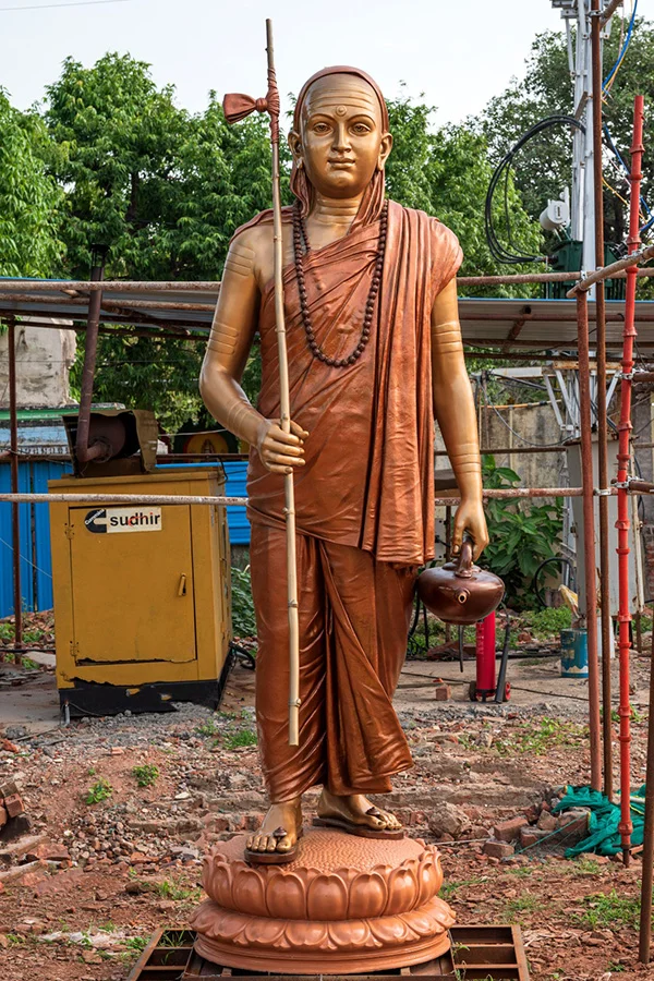 Le procédé de moulage de cette statue en bronze de 12,5 mètres de haut et de 85 tonnes est un modèle d'artisanat moderne du métal. L'équipe de Tongqing, dans la province du Jiangxi, a utilisé la technologie de « moulage segmenté + soudage global » pour décomposer la statue en 37 modules distincts, puis l'a amarré au millimètre près grâce à un système de positionnement laser. Parmi eux, le modèle du Vedanta Sutra tenu par Shankara ne mesure que 3 mm d'épaisseur, mais plus de 2 000 écritures sanskrites doivent être gravées en surface. La méthode de « gravure électrolytique par micro-gravure », développée indépendamment par l'équipe, a permis de surmonter ce goulot d'étranglement technique.