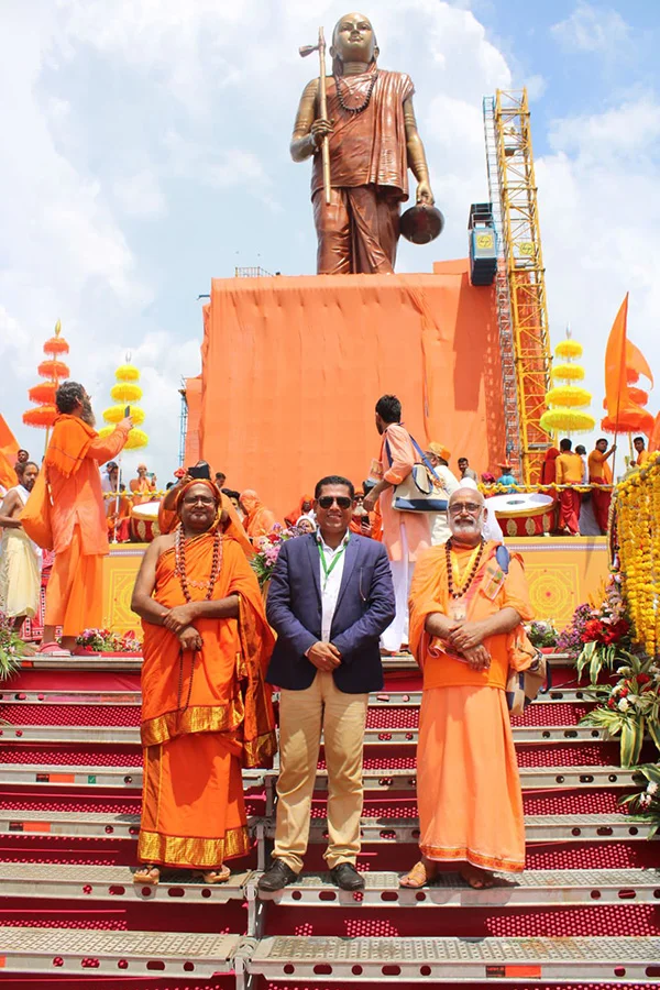 Lors de l'installation de la statue, l'équipe de Jiangxi Tongqing a dû relever un double défi : garantir la sécurité de la structure et l'intégrer aux normes rituelles hindoues. À cette fin, l'équipe d'ingénieurs a spécialement conçu un système de levage modulaire permettant de réserver un autel amovible au niveau de la poitrine de la statue. Ce système permet non seulement aux fidèles d'offrir des fleurs et de prier, mais aussi d'éviter d'endommager la structure. Lors de la cérémonie d'inauguration de la statue en 2023, lorsque le prêtre hindou a aspergé la statue d'eau bénite du Gange, le dispositif de pulvérisation d'eau dissimulé dans le socle a été activé simultanément, et le brouillard d'eau s'est répandu lentement le long des plis des vêtements de la statue. Ce spectacle « miracle » a émerveillé des dizaines de milliers de fidèles présents.